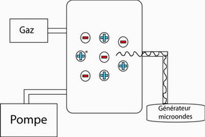 Le gaz que nous désirons ioniser, est injecté dans une enceinte confinée sous vide partiel ou à pression atmosphérique. La plasma est ensuite généré par l'action d'une décharge électrique dans le gaz, qui a pour rôle de transférer de l'énergie à ce gaz pour l'exciter et l'ioniser. En effet, du fait de leur faible masse, les électrons libres récupèrent l'essentiel de cette énergie et provoquent, par collisions avec les particules lourdes du gaz, leur excitation et ionisation et donc l'entretien du plasma.